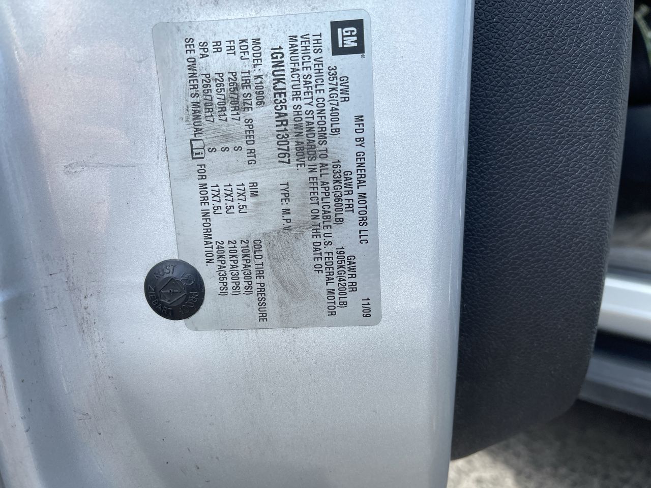1GNUKJE35AR130767