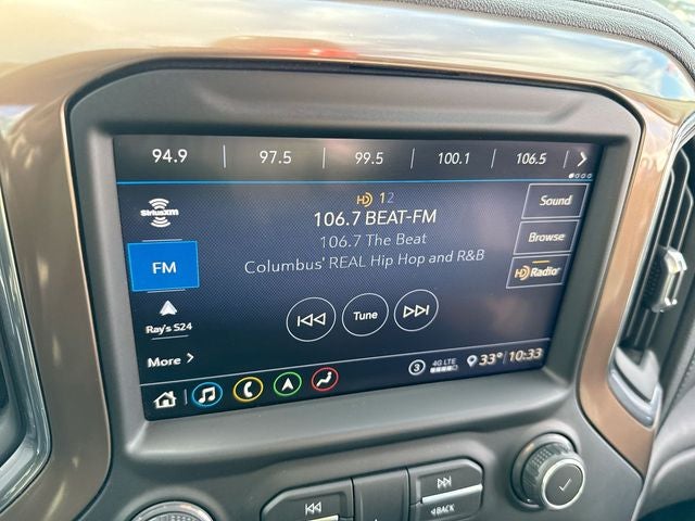 10-Speed Automatic, 4WD, Jet Black Leather, 12-Volt Rear Auxiliary Power Outlet, 120-Volt Bed Mounted Power Outlet, 120-Volt Instrument Panel Power Outlet, 170 Amp Alternator, 2nd Row Dual USB Charge-Only Ports, 2nd Row Heated Outboard Seats, 4G LTE Wi-Fi Hotspot Capable, 6 Rectangular Chromed Tubular Assist Steps, 8 Driver Information Center, Advanced Trailering System, Auto-Dimming Inside Rear-View Mirror, Auto-Dimming Inside Rearview Mirror w/Camera, Automatic Emergency Braking, Bed View Camera, Bluetooth® For Phone, Chevrolet Connected Access Capable, Chevytec Spray-On Black Bedliner w/Chevrolet Logo, Chrome Front Grille Bar w/Chrome Grille Inserts, Chrome Mirror Caps, Chrome Recovery Hooks, Color-Keyed Carpeting Floor Covering, Compass Located In Instrument Cluster, Deep-Tinted Glass, Electric Rear-Window Defogger, Electrical Lock Control Steering Column, Following Distance Indicator, Forward Collision Alert, Front Carpeted Floor Mats, Front LED Fog Lamps, Gooseneck/5th Wheel Package, Gooseneck/5th Wheel Prep Package, HD Radio, HD Rear Vision Camera, HD Surround Vision w/2 Trailer View Camera Provisions, Heated Steering Wheel, High Country Deluxe, Hitch Guidance w/Hitch View, Integrated Trailer Brake Controller, IntelliBeam Automatic High Beam On/Off, Keyless Open & Start, Lane Change Alert w/Side Blind Zone Alert, Lane Departure Warning System, Leather-Wrapped Steering Wheel, LED Cargo Area Lighting, Manual Tilt/Telescoping Steering Column, Multicolor 15 Diagonal Head-Up Display, Navigation System, OnStar & Chevrolet Connected Services Capable, Polished Exhaust Tip, Power Door Locks, Power Front Passenger Windows w/Express Up/Down, Power Front Windows w/Driver Express Up/Down, Power Rear Windows w/Express Down, Power Sliding Rear Window w/Defogger, Power-Adjustable Outside Mirrors, Preferred Equipment Group 3LZ, Rear Carpeted Floor Mats, Rear Cross Traffic Alert, Rear Wheelhouse Liners, Remote Vehicle Starter System, Safety Alert Seat, Safety Package II, SiriusXM w/360L, Steering Wheel Audio Controls, Steering Wheel Mounted Electronic Cruise Control, Technology Package, Ultrasonic Front & Rear Park Assist, Unauthorized Entry Theft-Deterrent System, Universal Home Remote, Up-Level Rear Seat w/Storage Package, Wireless Charging.