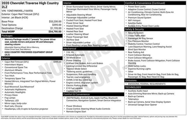 Cajun Red Tintcoat 2020 Chevrolet Traverse High Country AWD 9-Speed Automatic 3.6L V6 SIDI VVT