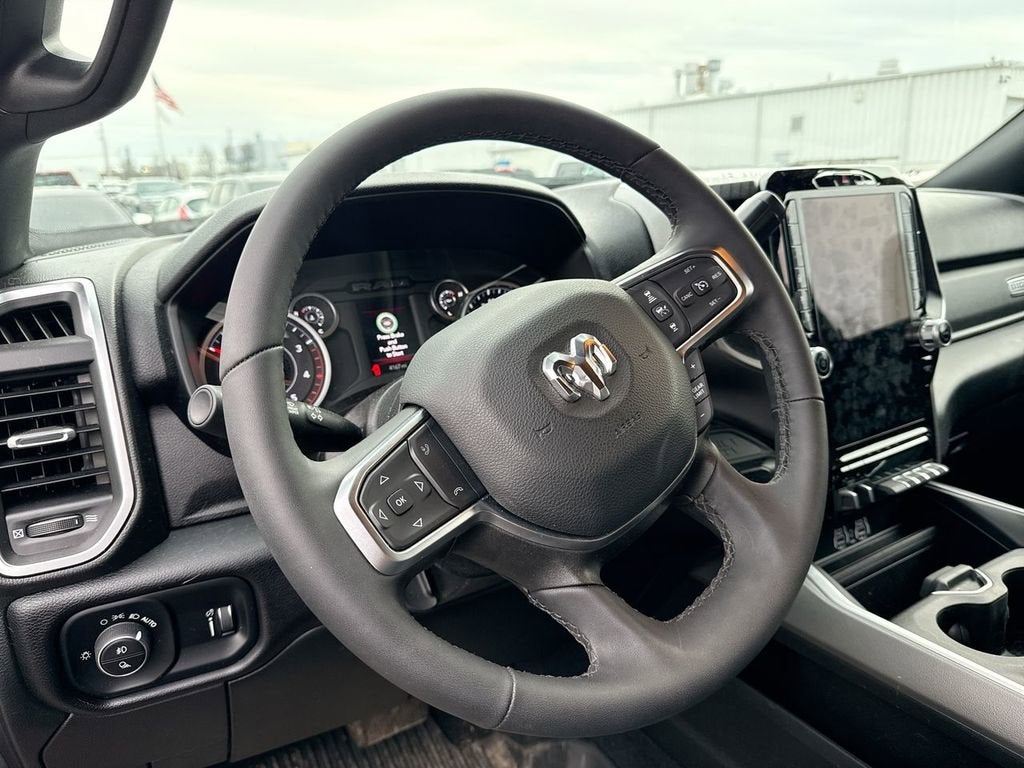 CARFAX One-Owner. 12 Touchscreen Display, 2 Way Rear Headrest Seat, 2nd Row in Floor Storage Bins, 4 Way Front Headrests, 40/20/40 Split Bench Seat, 4G LTE Wi-Fi Hot Spot, 9 Alpine Speakers with Subwoofer, Air Conditioning ATC with Dual Zone Control, Alexa Built-in, Anti-Spin Differential Rear Axle, Apple CarPlay, Auto Power-Folding Mirrors, Auto-Dimming Rear-View Mirror, Big Horn Level 1 Plus Equipment Group, Black Exterior Mirrors, Black Exterior Truck Badging, Black Interior Accents, Black Wheel Center Hub, Body Color Grille-Surround, Connected Travel and Traffic Services, Connectivity - US/Canada, Disassociated Touchscreen Display, Dual Glove Boxes, Emergency Vehicle Alert System (EVAS), Exterior Mirrors Courtesy Lamps, Exterior Mirrors with Heating Element, Exterior Mirrors with Supplemental Signals, Foam Bottle Insert (door Trim Panel), Folding Flat Load Floor Storage, Footwell Courtesy Lamp, For Details, Visit DriveUconnect.com, For More Info, Call 800-643-2112, Forward and Reverse Utility Lights, Front Armrest with Cupholders, Front Center Seat Cushion Storage, Front Seat Back Map Pockets, Global Telematics Box Module, Gloss Black Nostrils/Mic Black Grille, Glove Box Lamp, Google Android Auto, GPS Antenna Input, GPS Navigation, HD Radio, Heated Front Seats, Heated Seats and Wheel Group, Heated Steering Wheel, Integrated Voice Command with Bluetooth®, LED Bed Lighting, Locking Lower Glove Box, Luxury Steering Wheel, Manual Adjust 4-Way Front Passenger Seat, Mirror Running Lights, MOPAR Deployable Bed Step, MOPAR Spray in Bedliner, Night Edition, Off-Road Info Pages, Painted Front Bumper, Painted Rear Bumper, Power 2-Way Driver Lumbar Adjust, Power Adjust 8-Way Driver Seat, Power Adjust Mirrors, Power Heated Folding Telescopic Mirrors, Power Telescoping Mirrors, Power-Adjustable Convex Aux Mirrors, Premium Cloth 40/20/40 Bench Seat, Quick Order Package 24Z Big Horn, Radio: Uconnect 5 Navigation with 12.0 Display, Rear 60/40 Folding Seat, Rear Dome with on/Off Switch Lamp, Remote Start System, Remote USB Port - Charge Only, Selectable Tire Fill Alert, SiriusXM Radio Service, SiriusXM with 360L, Steering Wheel Mounted Audio Controls, Storage Tray, Trailer Tow Pages, Wheels: 20 x 8.0 Black Painted Aluminum.